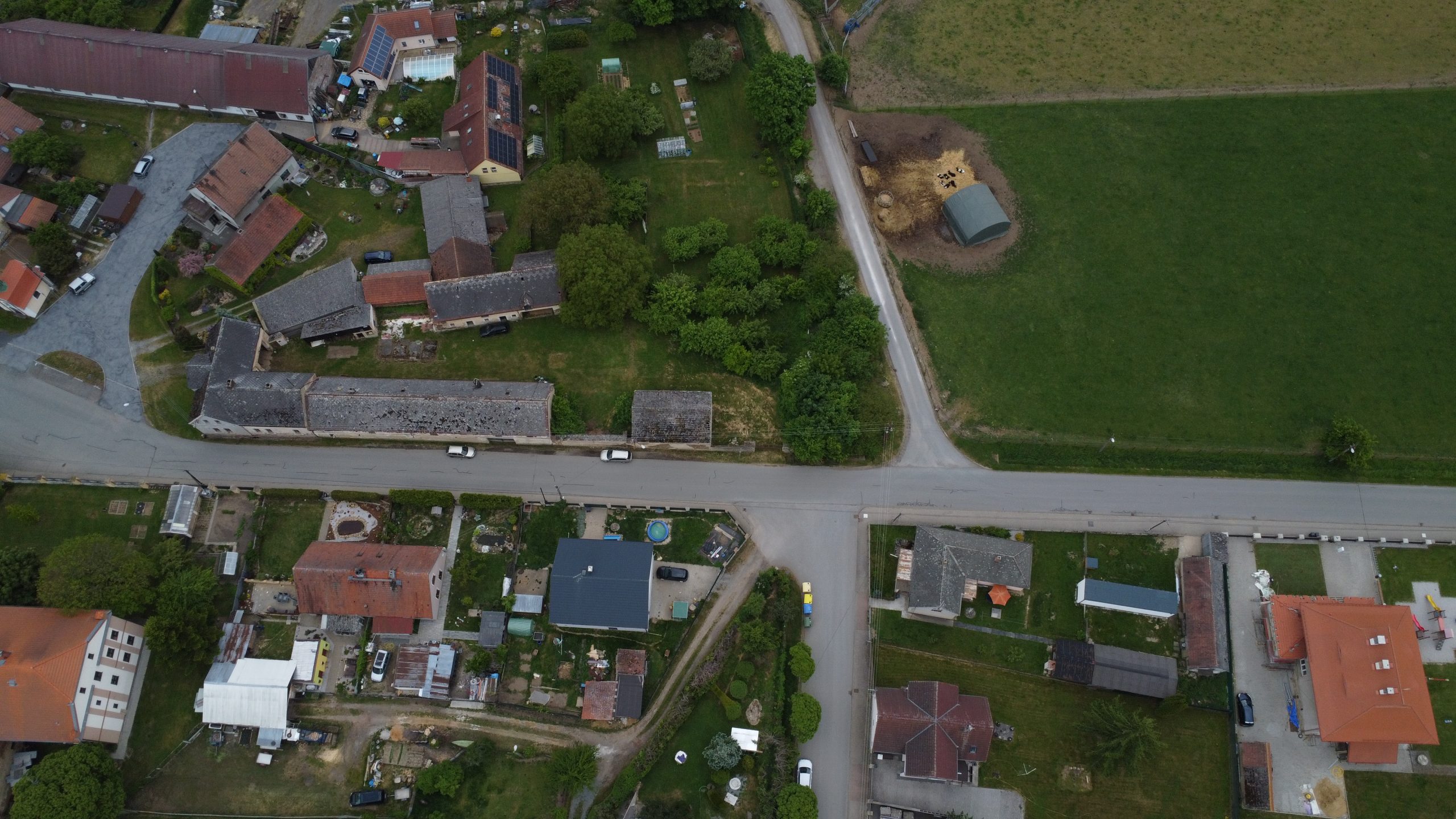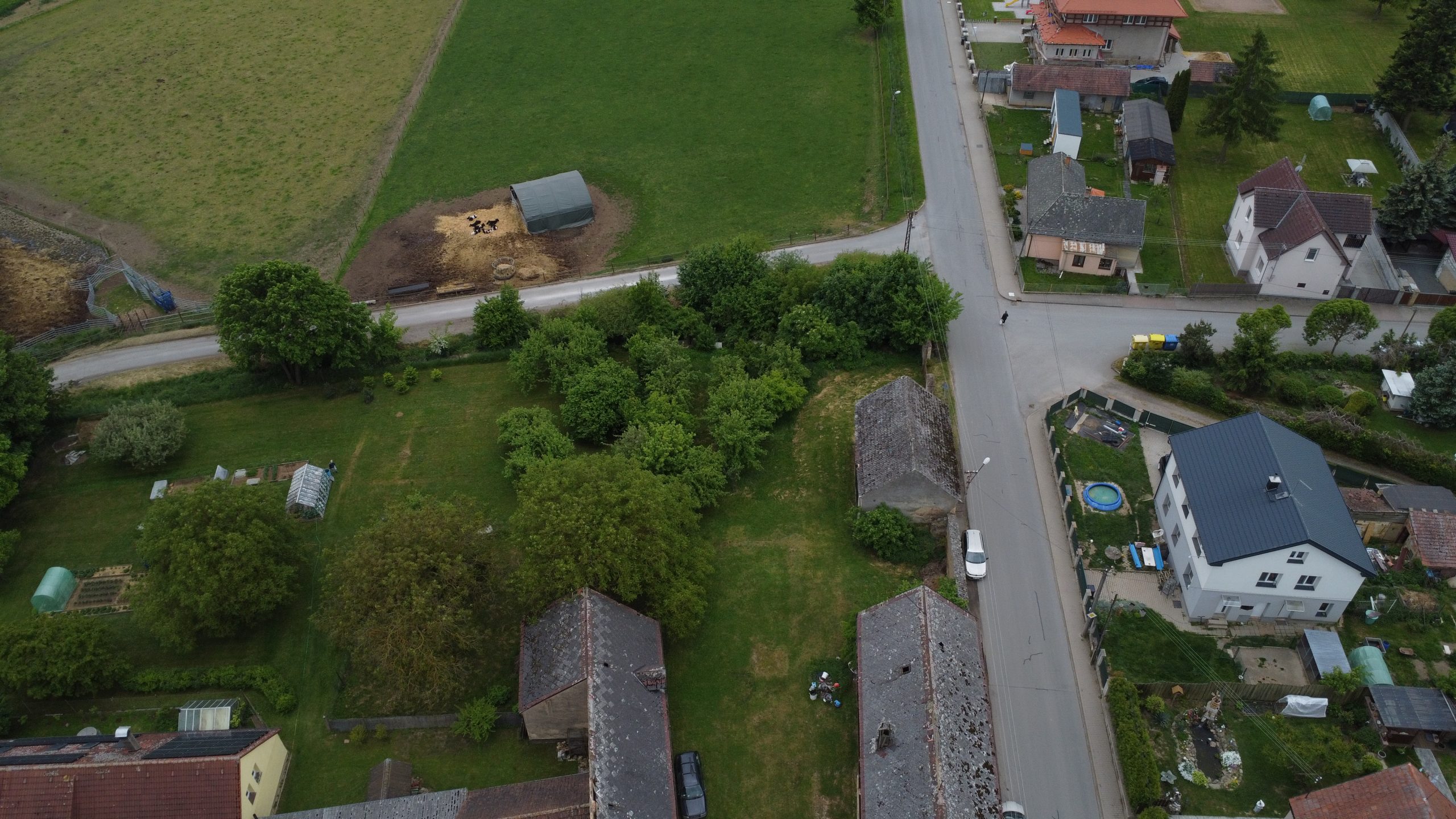 Na severní a východní hranici pozemku jsou 2 zahrady, kde sousedi jen sekají trávu a obytné části mají ve vzdálenosti zhruba 50 m od hranice pozemku. Takže pozemek je téměř v centru obce, ale přitom na velmi klidném místě.